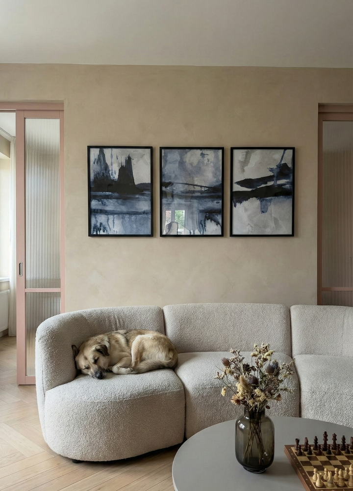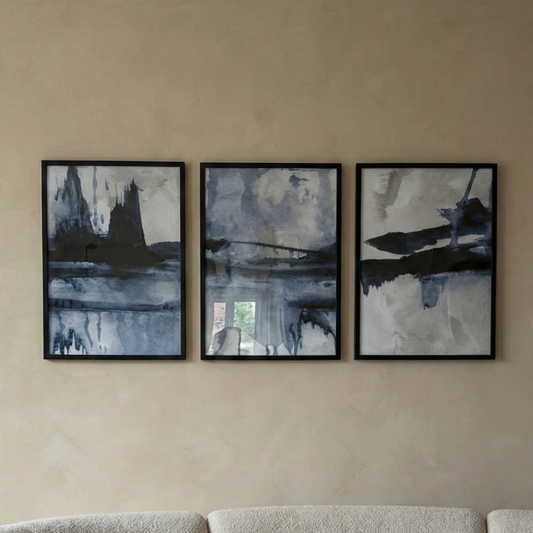 Estos tres cuadros forman una composición abstracta en tonos azul índigo, gris y negro que transmite una vibra serena, moderna y profundamente estética. 💙✨ Las pinceladas acuareladas crean un paisaje emocional difuso, lleno de textura y matices, ideal para quienes buscan piezas contemporáneas que aporten calma, sofisticación y carácter a salas, comedores, oficinas o dormitorios. Su estilo minimalista-abstracto se integra fácilmente a interiores nórdicos, modernos y sobrios, convirtiéndose en un punto focal elegante sin recargar el espacio.