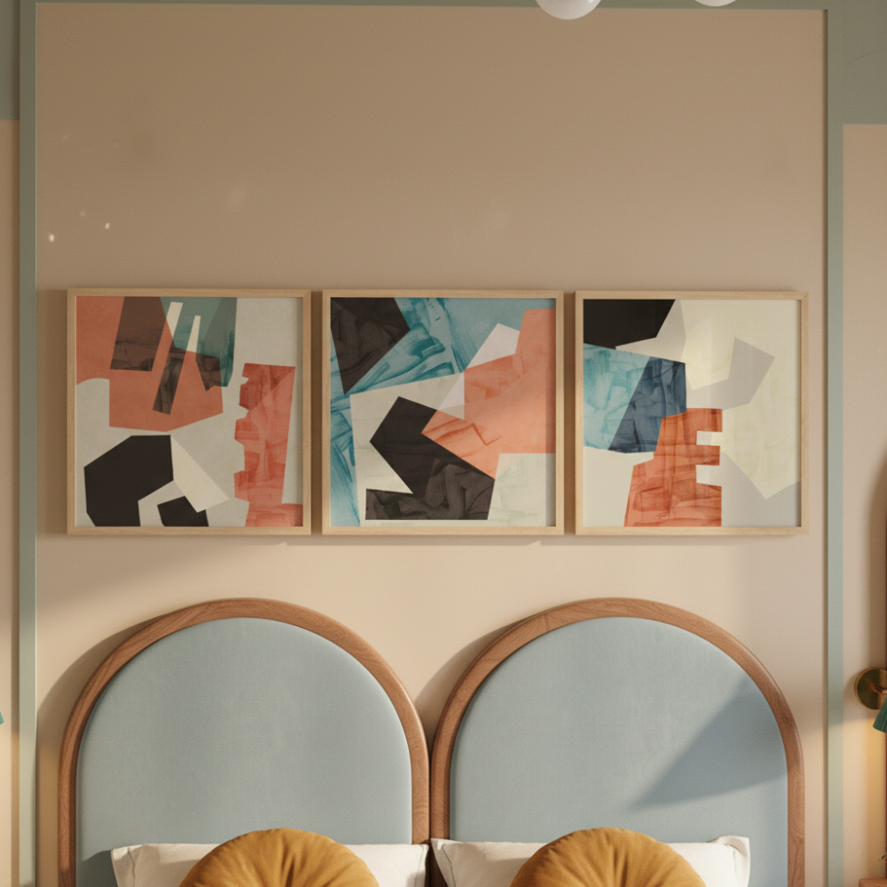 Este cuadro abstracto combina bloques de color en tonos azul petróleo, terracota, crema y negro con texturas tipo brochazo que le dan un look moderno, arquitectónico y súper estilizado. 🟧💙 Su composición geométrica crea un juego visual interesante que encaja perfecto en salas contemporáneas, comedores minimalistas, estudios creativos o espacios con vibra industrial. Es una pieza versátil que aporta carácter sin recargar, ideal para dar un toque sofisticado y actual a cualquier pared.