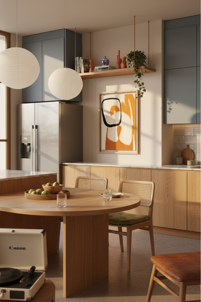 Esta obra abstracta destaca por su vibrante combinación de formas fluidas y colores cálidos. Los tonos terracota y crema se mezclan armoniosamente, mientras que un trazo negro audaz aporta contraste y estructura. Las curvas y líneas orgánicas evocan movimiento y creatividad, haciendo de esta pieza una elección ideal para espacios contemporáneos que buscan un toque de calidez y sofisticación. Con su diseño minimalista pero llamativo, es perfecta para agregar interés visual a interiores modernos y acogedores.