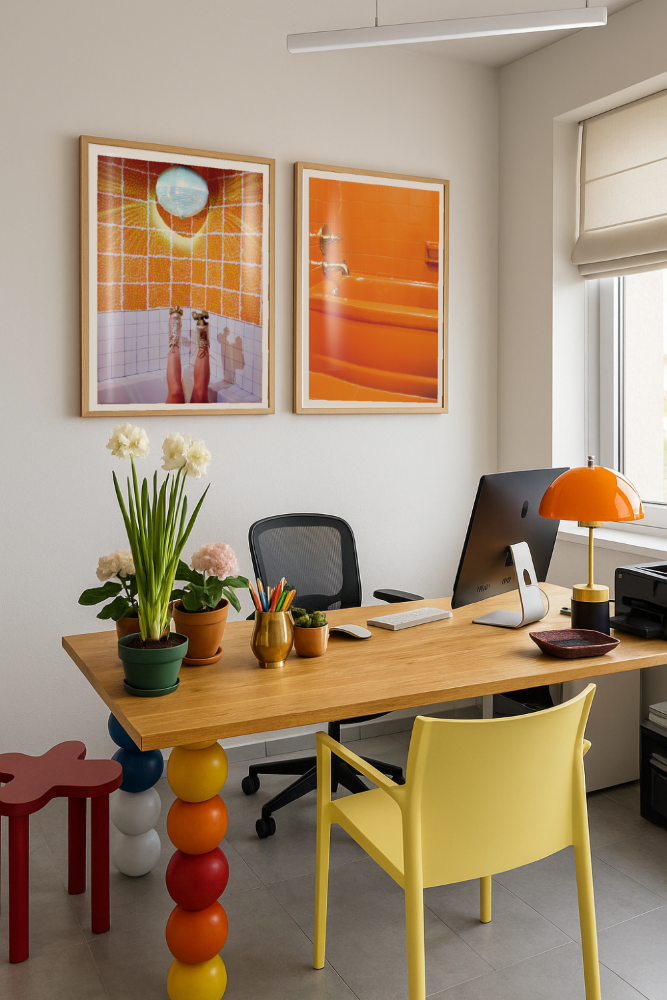 Este cuadro captura la esencia vibrante de un baño vintage en color naranja brillante, con azulejos y bañera en un mismo tono monocromático que nos transporta a los interiores retro de los años 70. 🌟 La intensidad del color genera un efecto audaz y energético, ideal para quienes buscan darle un toque pop y nostálgico a la decoración de su sala, comedor o incluso un espacio creativo. Esta pieza no pasa desapercibida: es un statement visual que celebra la estética kitsch y la fuerza del color como protagonista en el arte.