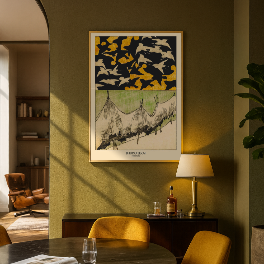 Bijutsu Sekai fue una influyente revista japonesa publicada a finales del siglo XIX y principios del XX, dedicada a difundir el arte tradicional y moderno de Japón. Bajo la dirección del artista y editor Watanabe Shōtei, esta publicación reunió ilustraciones delicadas inspiradas en la naturaleza, el simbolismo japonés y la estética del ukiyo-e, convirtiéndose en una ventana al refinado mundo artístico de la época Meiji.