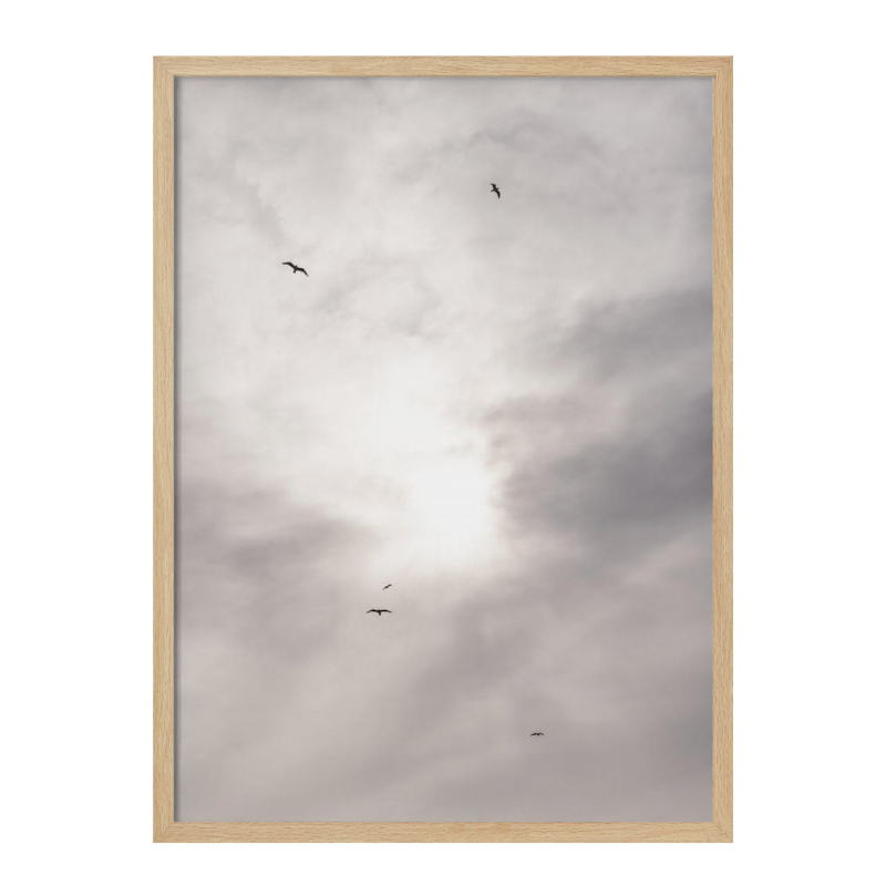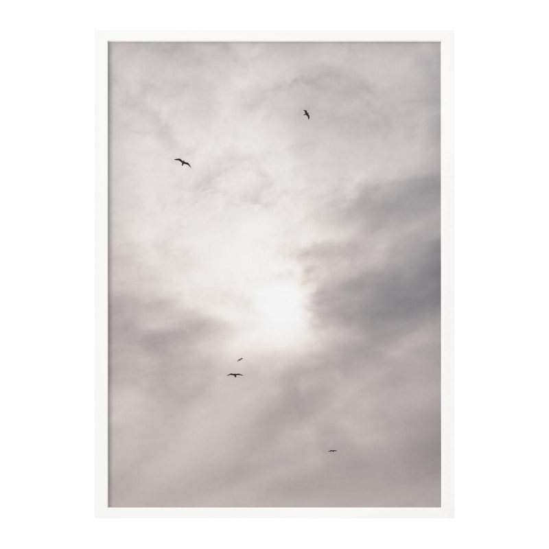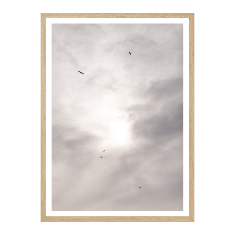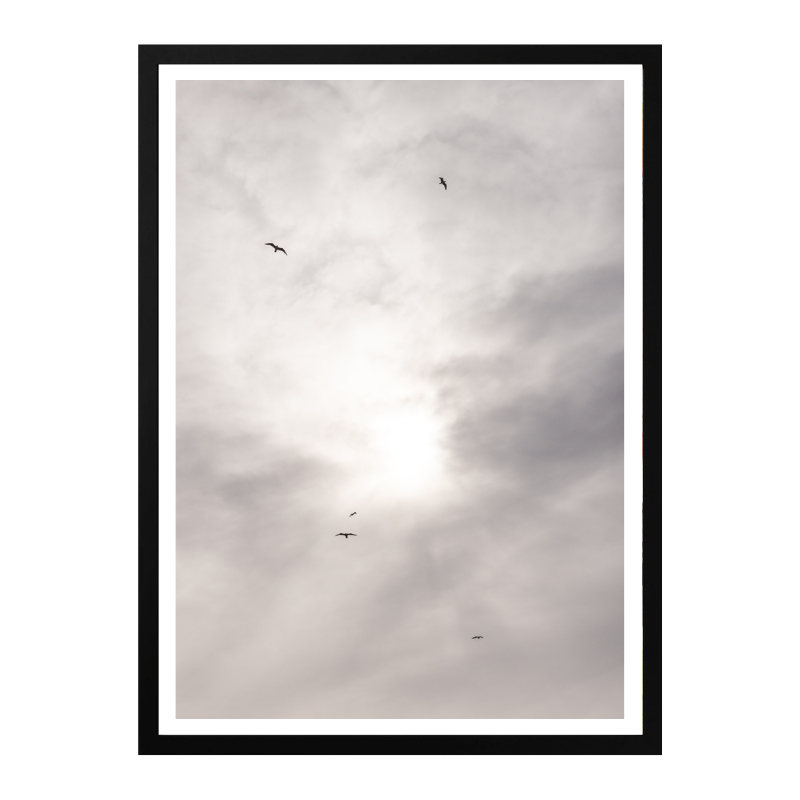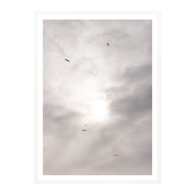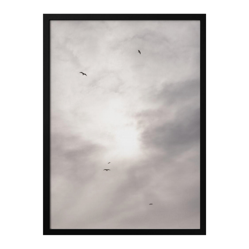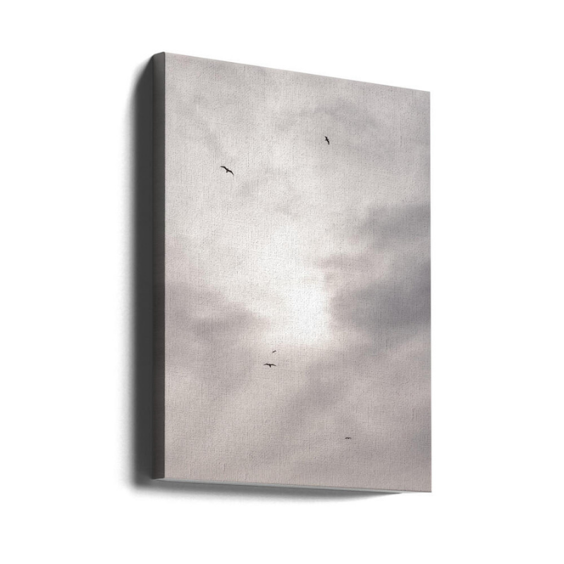 Este cuadro presenta una fotografía minimalista de un cielo cubierto por nubes suaves en tonos grises y beige, donde pequeñas aves en vuelo aparecen como siluetas delicadas que aportan profundidad y sensación de libertad. 🕊️ La luz difusa en el centro crea un punto de calma visual y equilibrio, haciendo de esta pieza una opción ideal para quienes buscan cuadros fotográficos serenos, elegantes y atemporales. Su estética limpia y contemplativa encaja perfecto en espacios modernos, minimalistas o neutros, aportando ligereza, amplitud y una vibra relajante sin robar protagonismo.