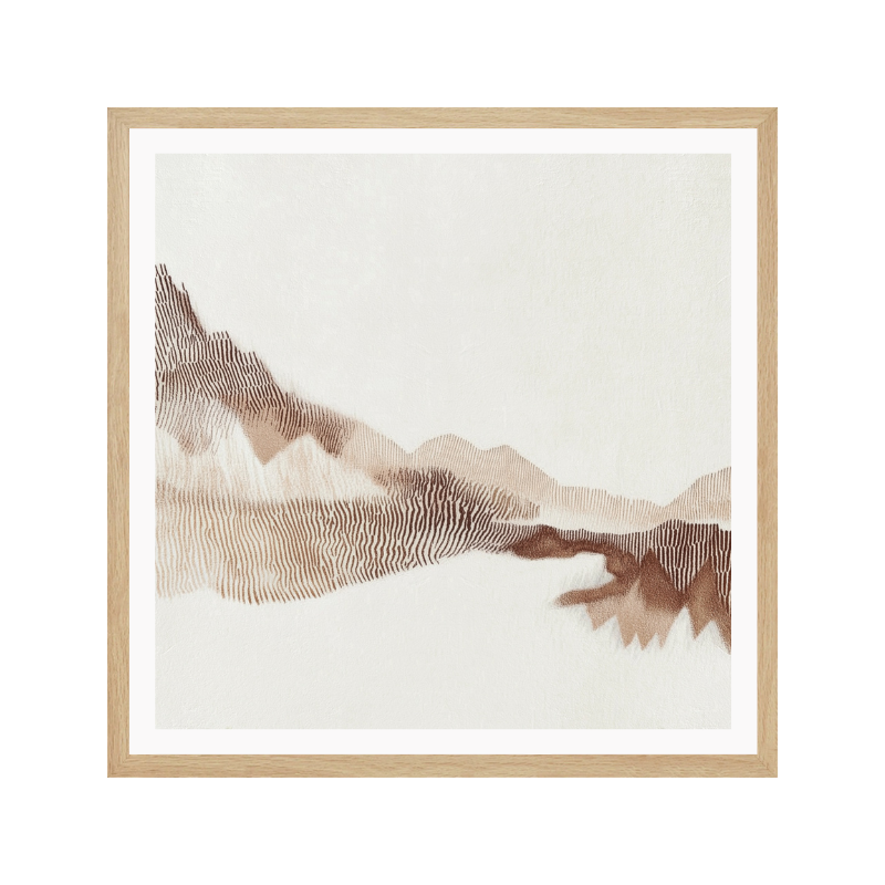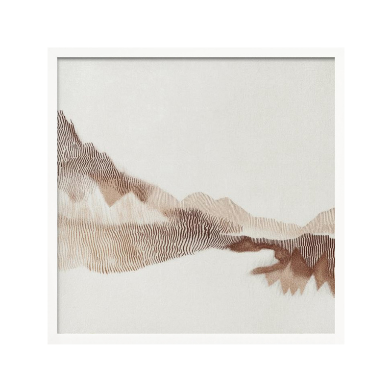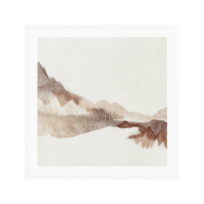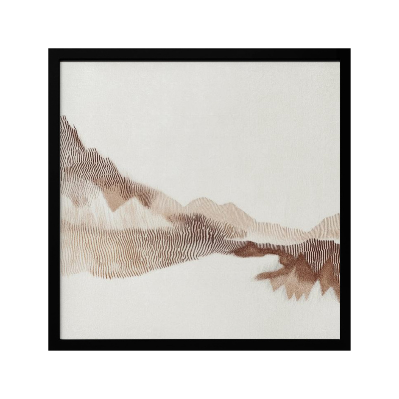 Este cuadro representa un paisaje abstracto hecho de líneas repetidas en tonos café, terracota y beige que forman montañas suaves y cañones iluminados. Su composición es delicada y etérea, con un gran espacio claro que aporta calma y amplitud visual. Las texturas lineales crean profundidad sin perder la esencia minimalista, convirtiéndolo en una pieza ideal para ambientes serenos, modernos y neutros. Perfecto para salas, comedores, estudios y dormitorios donde se busca un toque artístico natural inspirado en paisajes.