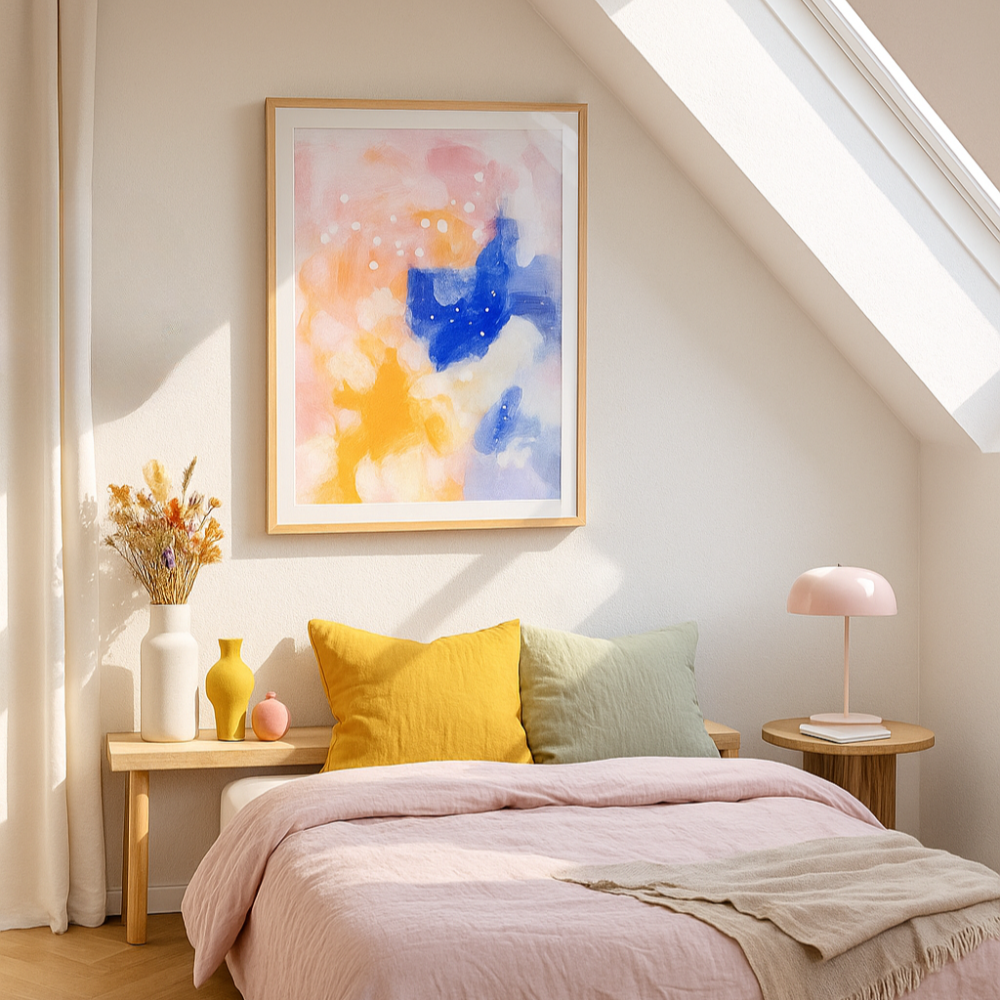 El amor de Ejaaz Haniff por el arte comenzó cuando era niño en Guyana, después de descubrir una caja de crayones; cada color inspiraba una emoción diferente. Ahora, radicado en Canadá, sigue desarrollando su pasión creativa en la adultez. Con infinitos colores y las formas, sus obras encarnan un diseño minimalista y reconfortante. Utilizando pintura acrílica y audaces elementos gráficos digitales, sus patrones son cohesivos y continuos. Su arte es brillante y divertido, con una mezcla de texturas que da vida a su trabajo.