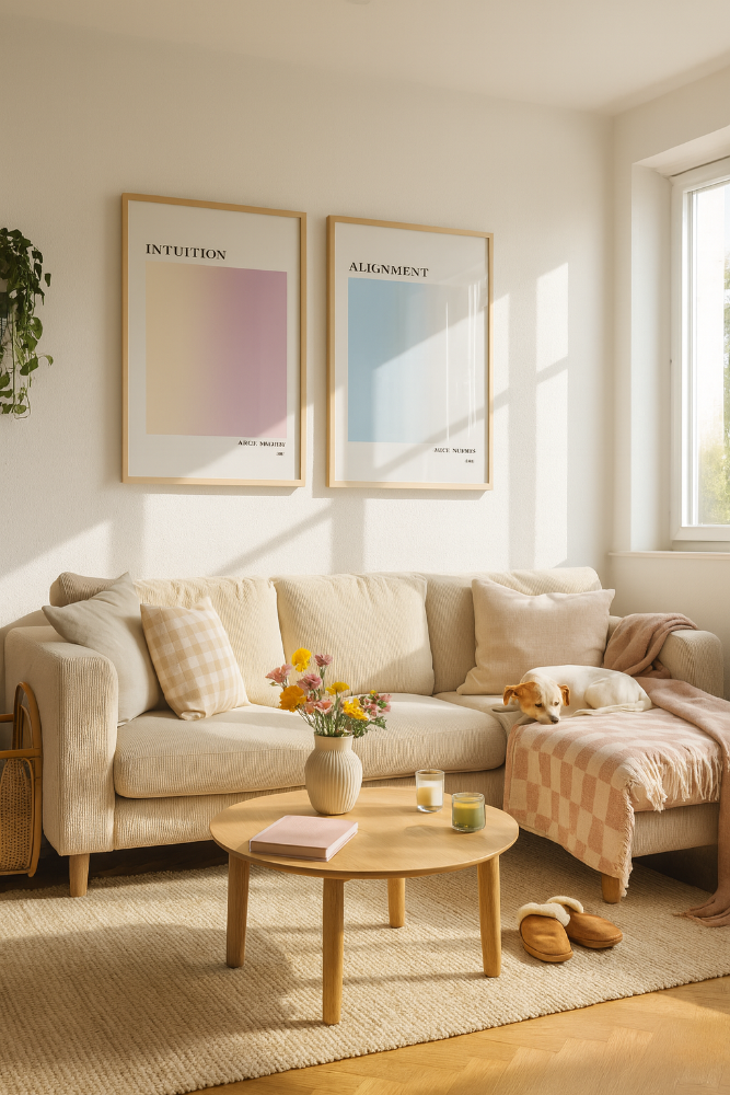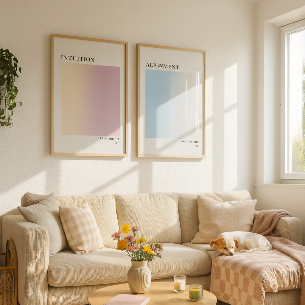 Esta ilustración minimalista presenta un diseño limpio y moderno, acompañado por un suave degradado de colores que van del beige al rosa pastel y lila. El texto "ANGEL NUMBER 111" resalta el simbolismo espiritual del número. Es una pieza ideal para quienes buscan una decoración sencilla pero significativa, perfecta para espacios que fomentan la introspección, la espiritualidad y la calma.