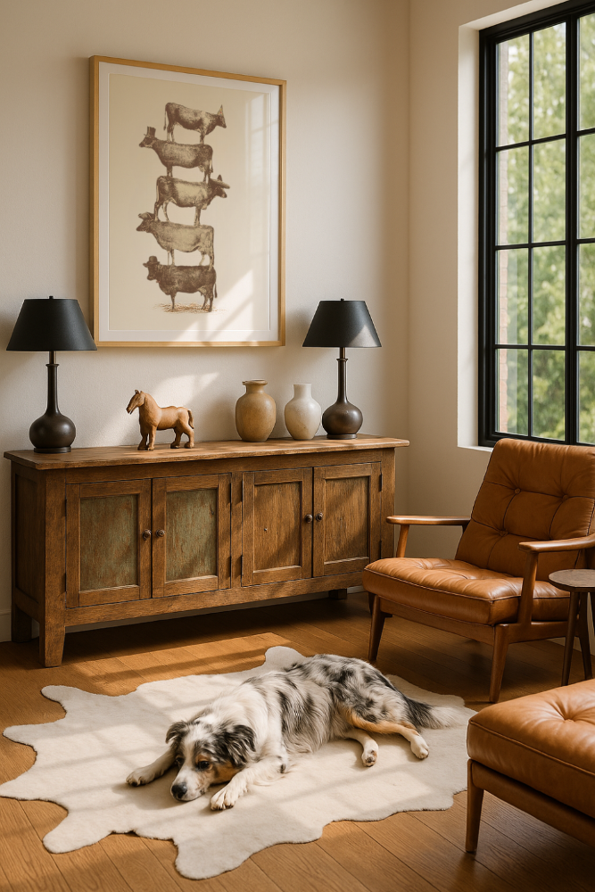 Esta divertida y surrealista ilustración muestra una pila de vacas apiladas una sobre otra, cada una con sombreros únicos, que van desde un sombrero de copa hasta un gorro de fiesta. Dibujada con un estilo vintage y en tonos sepia, esta obra combina humor y creatividad, creando una escena inusual y llamativa. Perfecta para quienes disfrutan del arte con un toque de ingenio, este cuadro es ideal para añadir carácter y una vibra lúdica a espacios modernos, rústicos o decoraciones con personalidad.