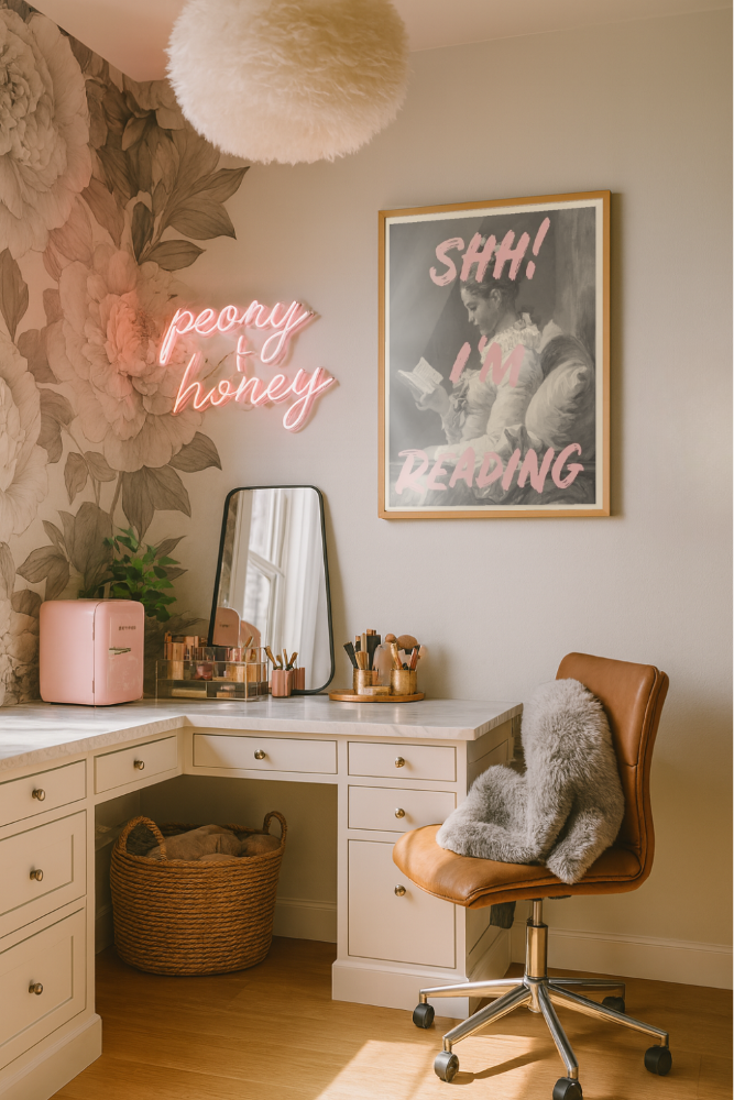 Esta imagen muestra una pintura clásica en blanco y negro de una mujer leyendo, con un estilo elegante y tranquilo. Sobre la imagen, en grandes letras rosadas, se superpone el texto "SHH! I'M READING", lo que le da un toque moderno y divertido. Perfecta para amantes de la lectura que quieren decorar su espacio con un mensaje claro y estilizado. Ideal para bibliotecas, oficinas o rincones de lectura en casa.