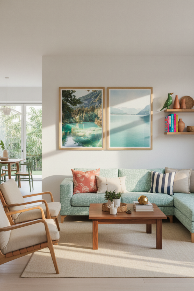 Una escena de paz absoluta 💙 Esta fotografía captura un lago turquesa de aguas tranquilas frente a un horizonte de montañas envueltas en neblina. La composición es minimalista, serena y refrescante, ideal para espacios que invitan al descanso o la contemplación. Tiene una estética limpia que combina perfecto con decoración escandinava, moderna o tipo spa. Este cuadro funciona muy bien en dormitorios, estudios o cuartos de meditación, aportando equilibrio, frescura y una sensación de aire puro y silencio. Es como tener una bocanada de calma colgada en tu pared. 🧘♀️🌫️