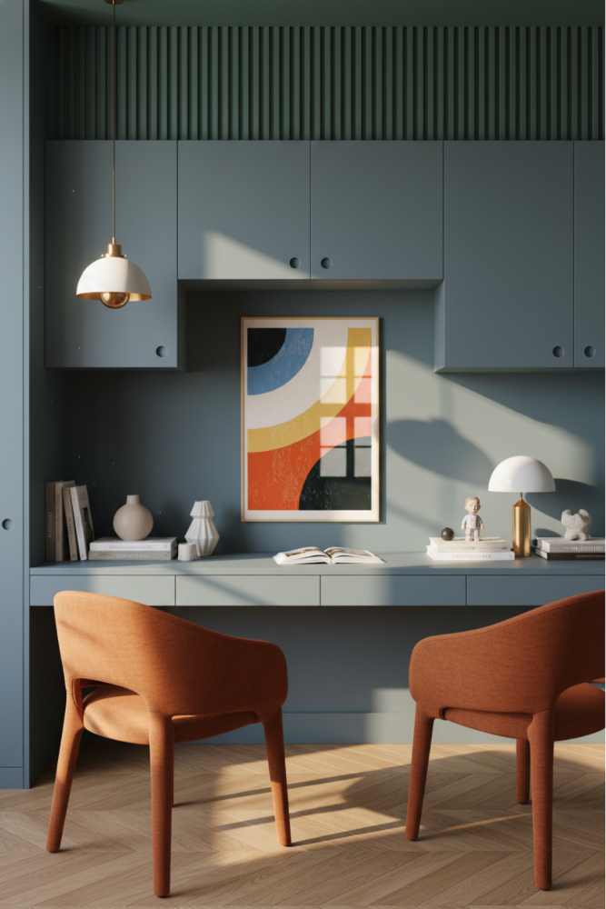 Este cuadro abstracto es pura energía visual. Con sus curvas amplias en tonos azul polvoso, crema, mostaza y naranja quemado sobre fondo beige, genera un efecto de movimiento retro que transforma cualquier rincón. Tiene ese look nostálgico que recuerda a los gráficos setenteros, ideal para quienes aman lo vintage pero con un toque moderno. Va increíble en salas con espíritu creativo, espacios de lectura o estudios donde quieras sumar diseño, color y calidez.