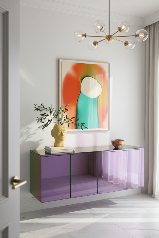 Esta obra es puro movimiento y color. Un trazo vertical en verde turquesa se abre paso entre naranjas intensos y amarillos vibrantes, creando una figura que parece emerger desde un fondo etéreo. La forma central en crema le da equilibrio a la composición, como si se tratara de una puerta o una mirada desde otro plano. Ideal para espacios modernos con personalidad fuerte: desde un estudio creativo hasta un recibidor audaz. 💥🟠