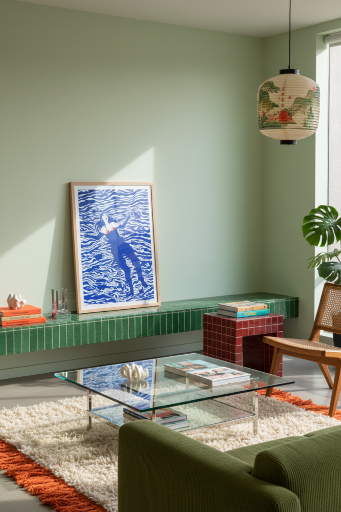 Este cuadro poderoso y sensual muestra a una mujer de piel clara suspendida en un mar hipnótico de líneas en azul intenso. La figura se funde con el agua, como si el cuerpo y el entorno fueran uno solo, mientras sus pechos están cubiertos por formas que evocan hojas o manos en rojo vibrante. Esta obra de estilo gráfico y contrastes fuertes transmite libertad, placer y conexión con el cuerpo. Ideal para espacios con carácter: desde una recámara moderna hasta un baño con acentos artísticos. 💙🔥