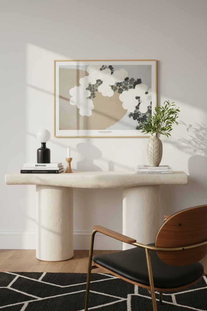 Con un estilo delicado y lleno de armonía visual, esta obra de Kamisaka Sekka captura la elegancia atemporal de las peonías blancas sobre un fondo neutro. Las hojas oscuras enmarcan con fuerza las flores etéreas, mientras unos sutiles toques de rojo dan profundidad y contraste. Ideal para espacios donde se busque serenidad y sofisticación, como un dormitorio, un estudio o una sala con decoración minimalista o de inspiración asiática. Una pieza que rinde homenaje a la belleza de la naturaleza con sutileza y refinamiento. ✨