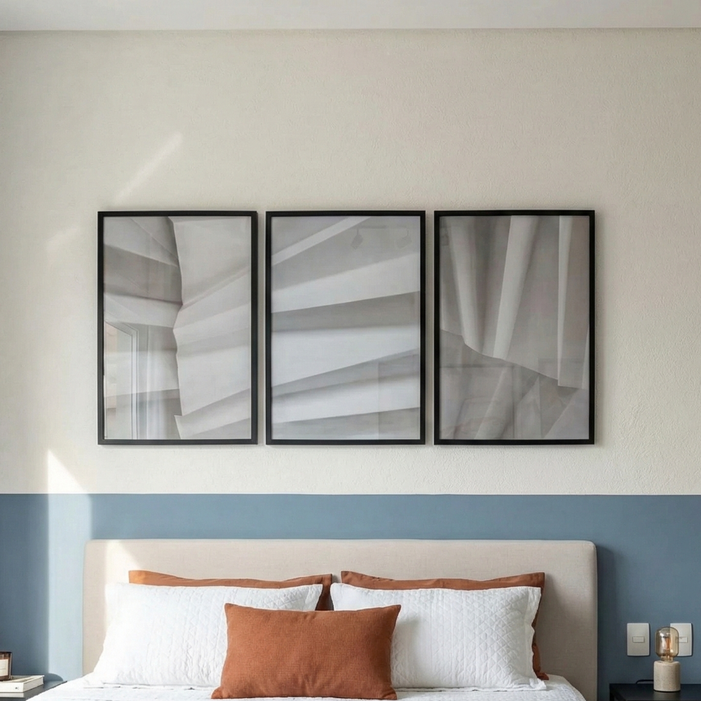 Esta pieza en blanco y gris captura la belleza de lo sutil a través de pliegues suaves que recuerdan telas o papel plegado con precisión. Los volúmenes generados por las sombras y la luz crean un efecto tridimensional que da movimiento a una composición silenciosa y armónica. Ideal para interiores de estilo escandinavo, japandi o minimalista, ya sea en un comedor moderno, una recámara serena o un estudio creativo.