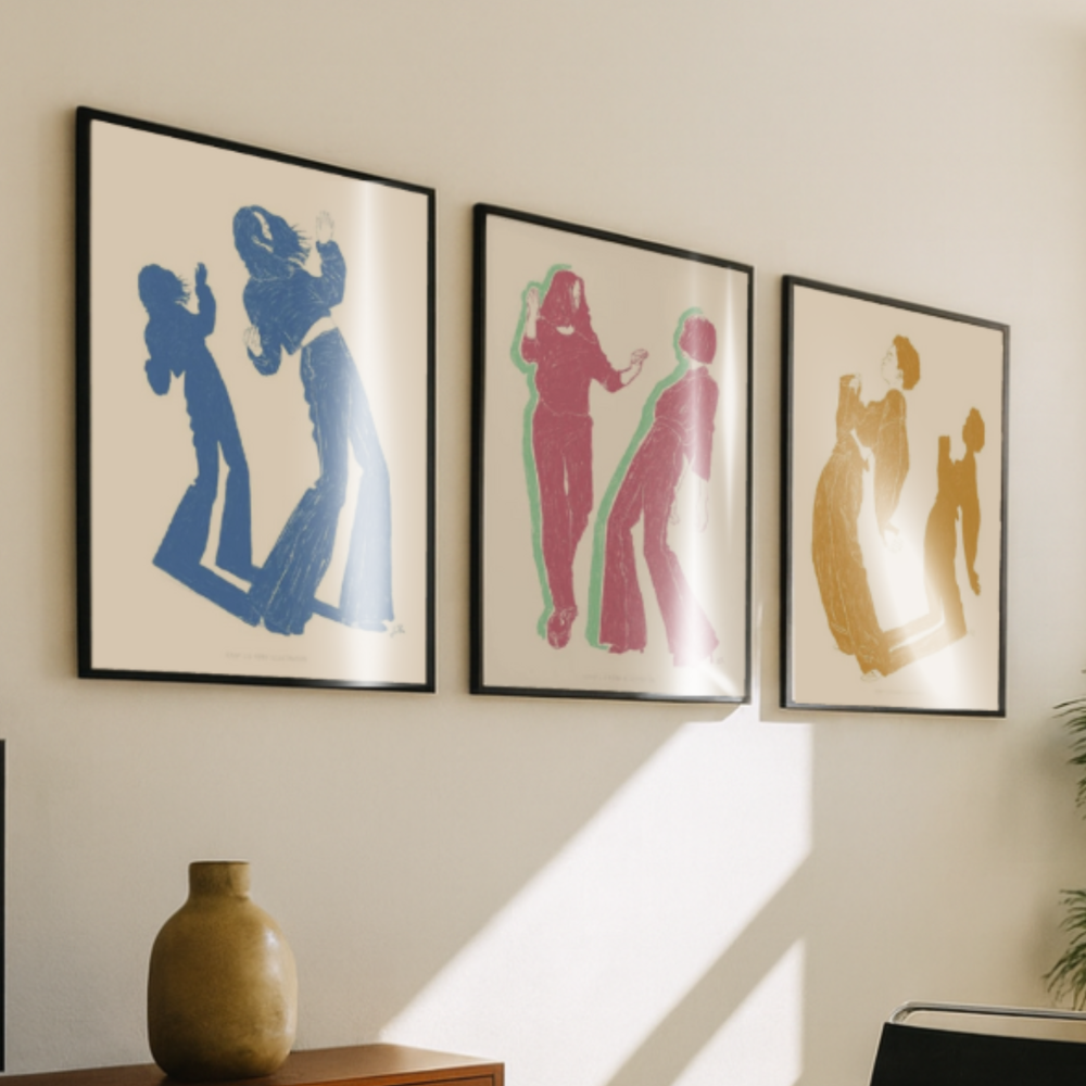 Este set es pura energía retro 🕺 Con siluetas en movimiento, looks setenteros y colores vibrantes como el azul eléctrico, rosa fucsia y mostaza, estas ilustraciones capturan el espíritu libre y festivo del disco y el soul. Es una tríada perfecta para dar ritmo y personalidad a estudios creativos, salas o rincones con alma funky. Ideal para amantes del arte gráfico, la nostalgia setentera y la decoración con actitud. ✨🎶