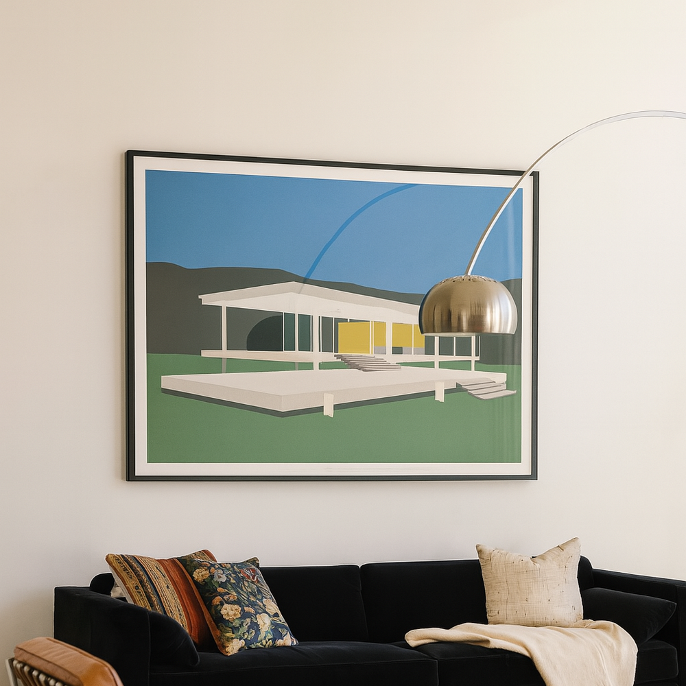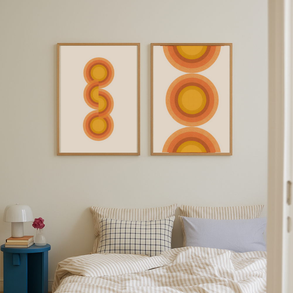 Usa cuadros como punto focal: Si no quieres saturar el espacio, elige una pieza grande y colócala en una pared principal. Un cuadro retro bien elegido puede definir el carácter de toda una habitación.