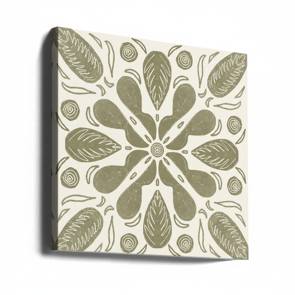 Este cuadro cuadrado en tono verde oliva evoca la belleza de la naturaleza con un diseño que parece tallado a mano. Sus formas orgánicas, que recuerdan hojas, semillas y espirales, crean una composición armoniosa y simétrica ideal para cocinas, estudios o espacios con decoración rústica o natural. Tiene ese encanto de los mosaicos antiguos con un giro contemporáneo que lo hace atemporal y versátil. 🍃✨