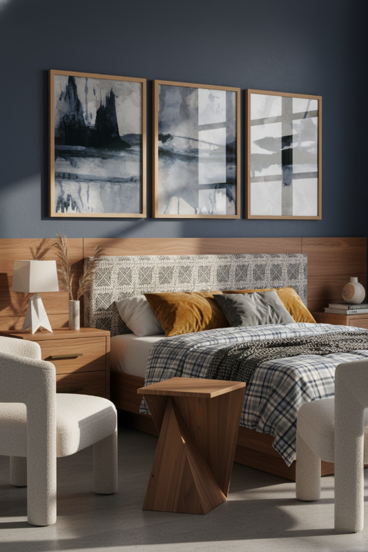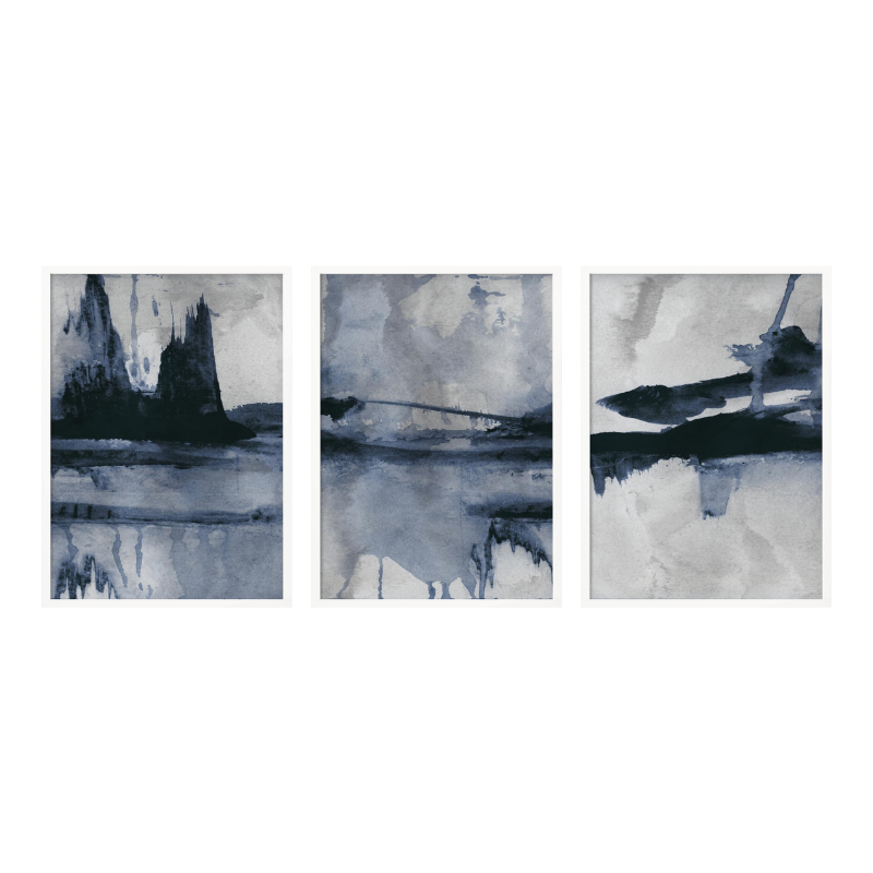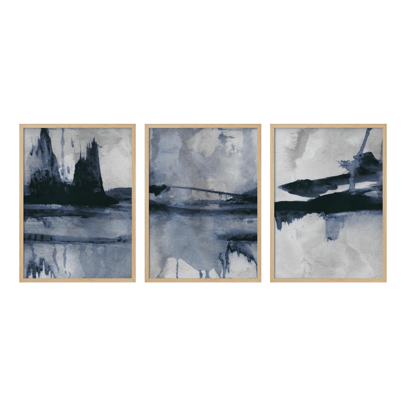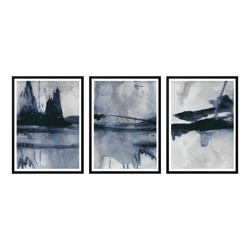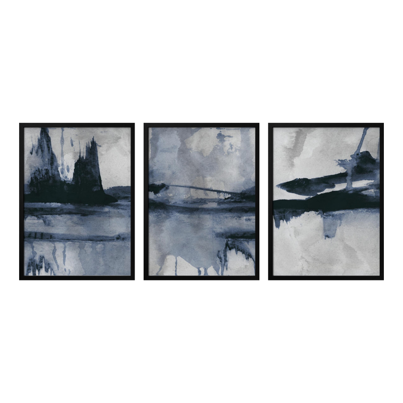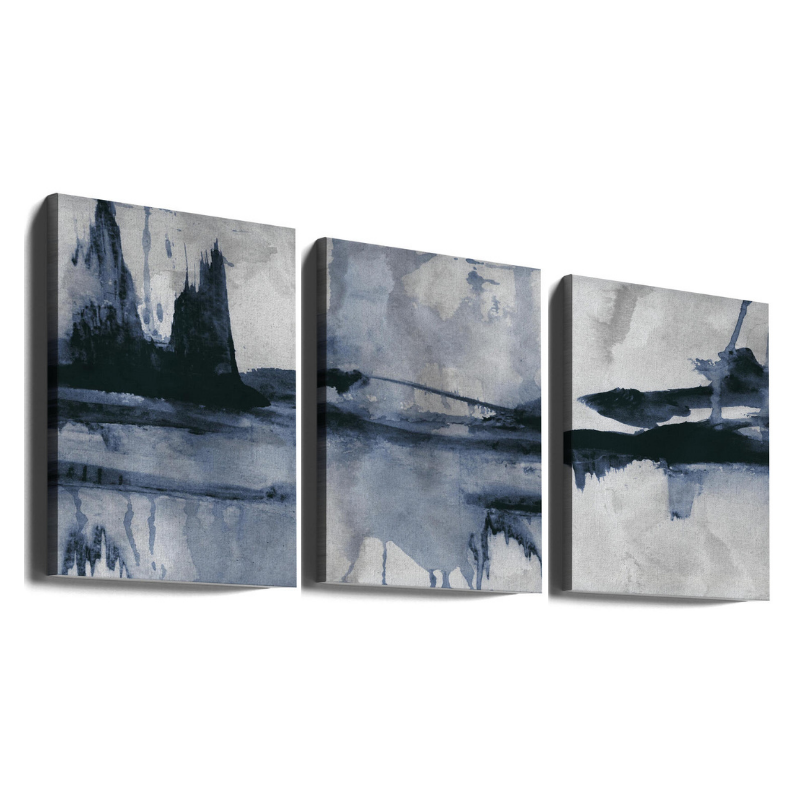 Estos tres cuadros forman una composición abstracta en tonos azul índigo, gris y negro que transmite una vibra serena, moderna y profundamente estética. 💙✨ Las pinceladas acuareladas crean un paisaje emocional difuso, lleno de textura y matices, ideal para quienes buscan piezas contemporáneas que aporten calma, sofisticación y carácter a salas, comedores, oficinas o dormitorios. Su estilo minimalista-abstracto se integra fácilmente a interiores nórdicos, modernos y sobrios, convirtiéndose en un punto focal elegante sin recargar el espacio.